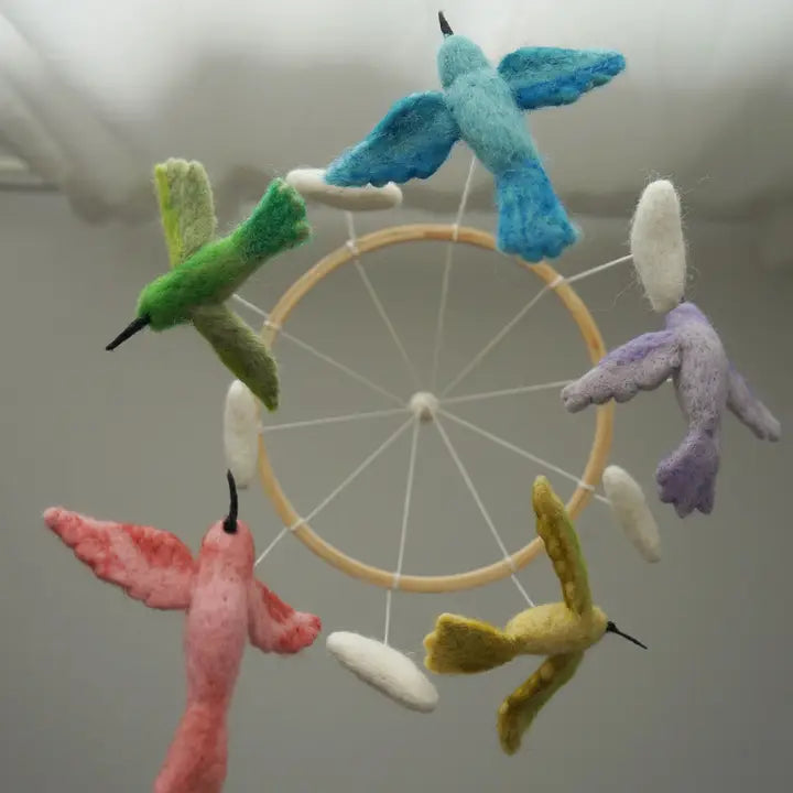 Handmade Hummingbird Baby Mobile – Delicate Wool Nursery Decor