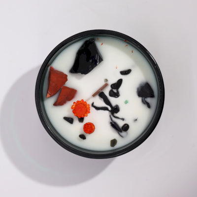 Step into the mystical world with Hop Hare Crystal Magic Flower Candle - The Devil, crafted with Red Jasper & Black Agate with the addition of dry flowers.